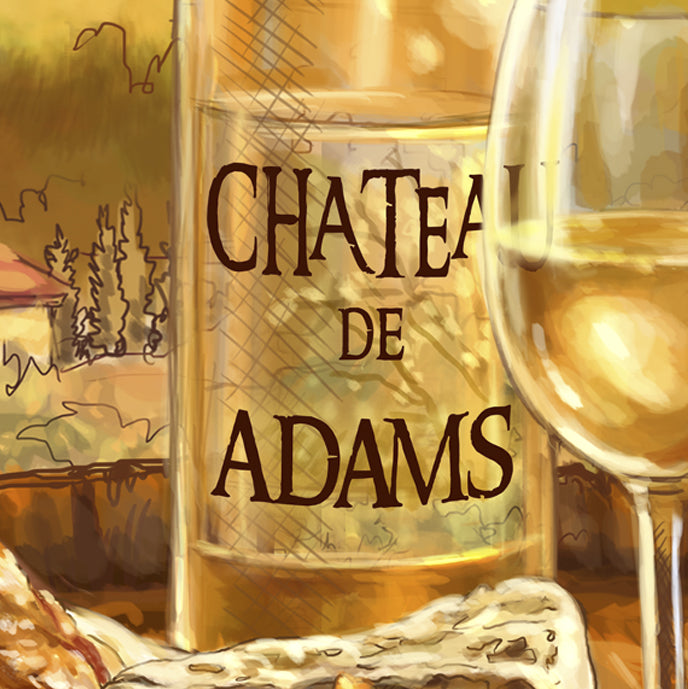 The backdrop of this masterpiece is a breathtaking vineyard scene, with a stunning villa nestled in the background. Delicate grape vines hang along the top of the canvas, adding to the enchanting ambiance.